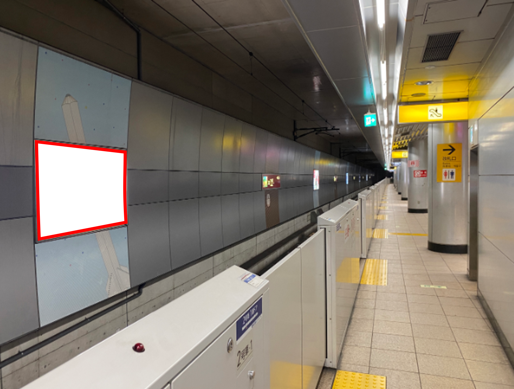 ■ホーム階段・エスカレータにも近く、電車をお待ちのお客様にご覧いただける視認性の高い看板です。