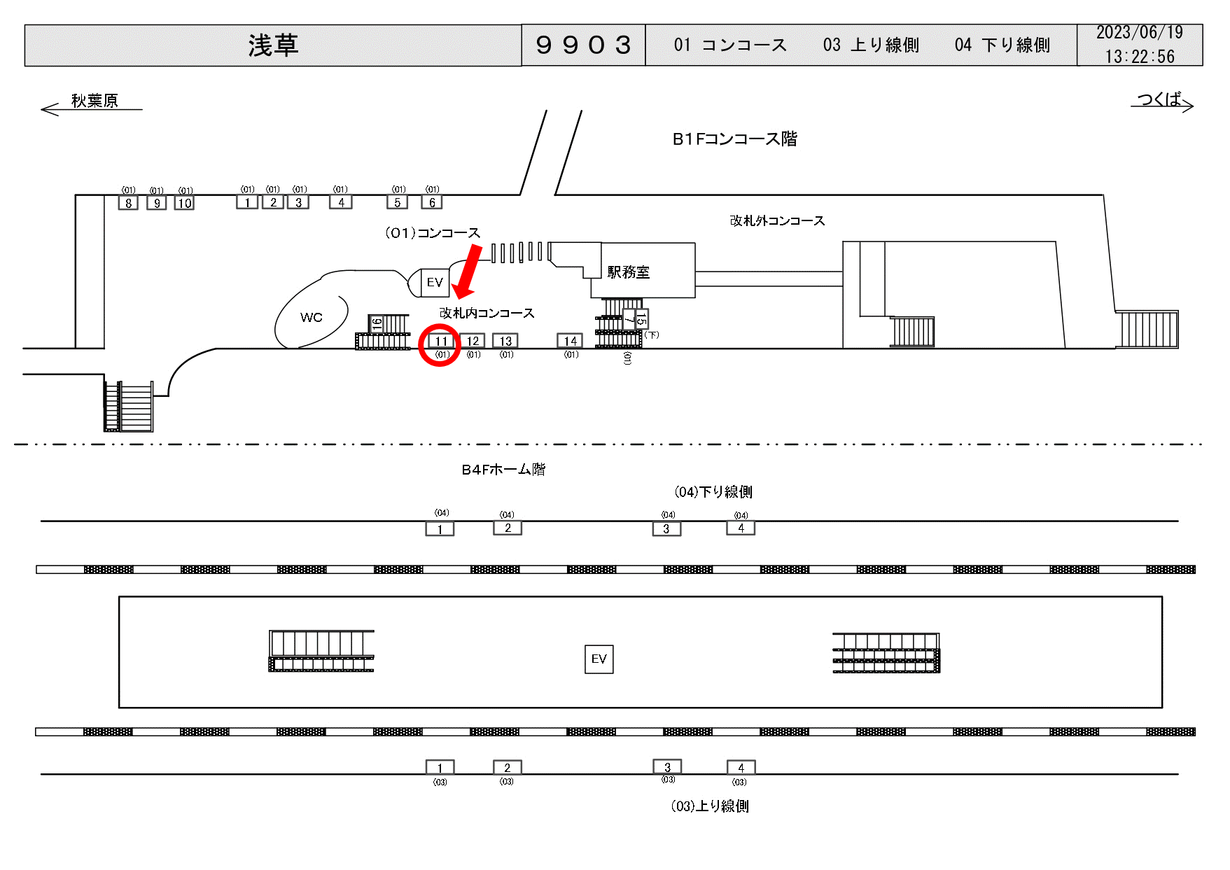 つくばエクスプレス(TX)浅草駅改札正面壁面に設置された看板です。