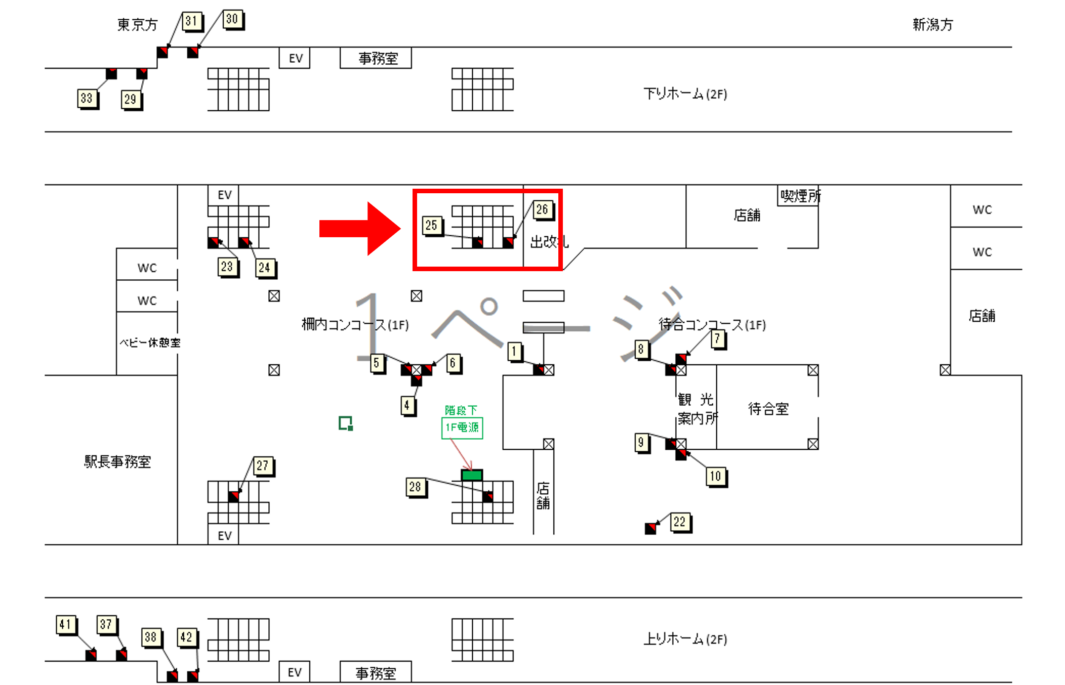 ■階段上に設置されており、新幹線を下車して改札に向かう際にご覧になる視認性の高い看板です。
