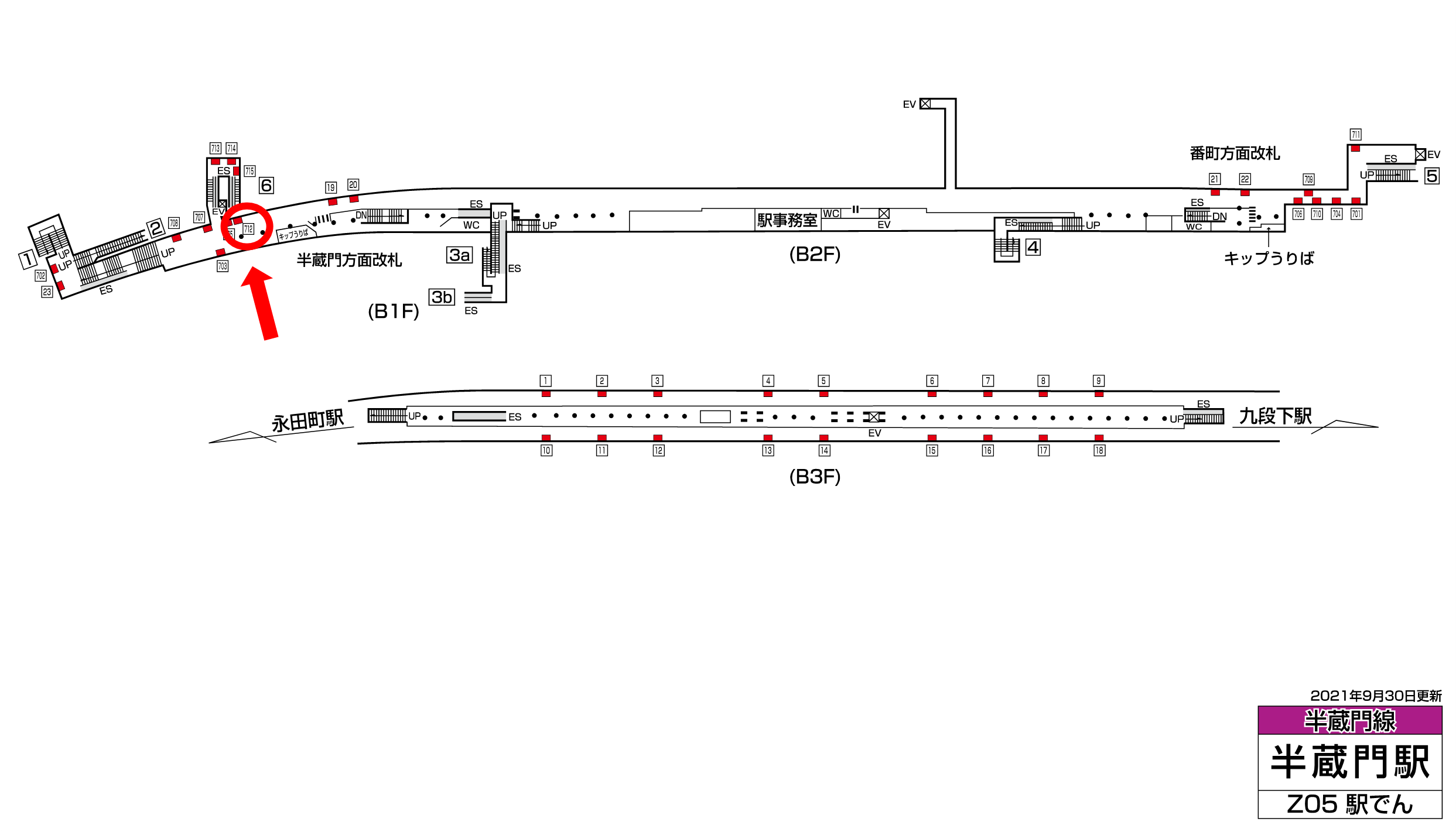 東京メトロ半蔵門線 半蔵門方面出口➅付近に設置されている看板です。