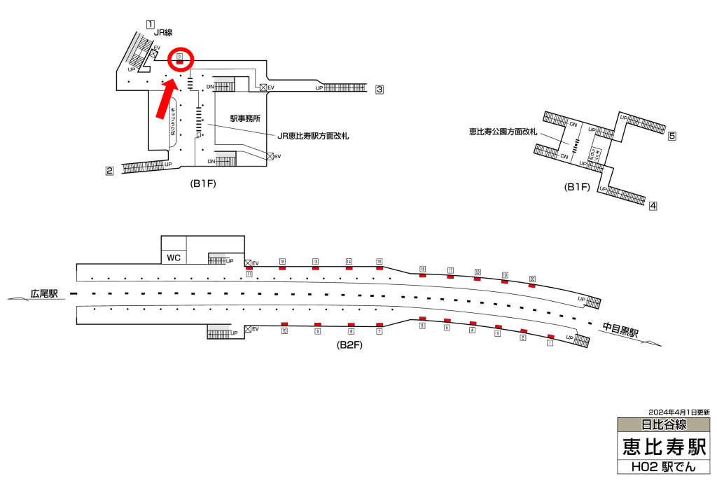 東京メトロ恵比寿駅は一日の乗降客数が104,738人、日比谷線が発着する駅です。