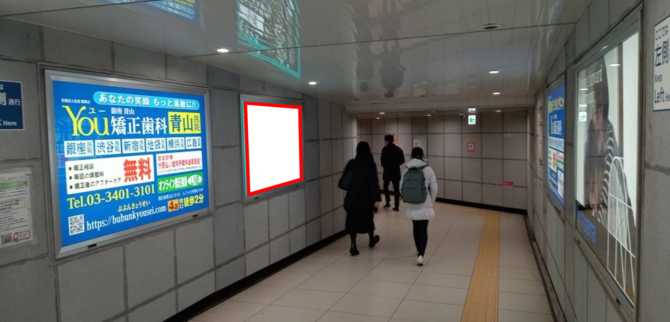 東京メトロ銀座線外苑前駅の外苑いちょう並木方面改札(4番出口)の改札外通路に設置された電飾看板です。