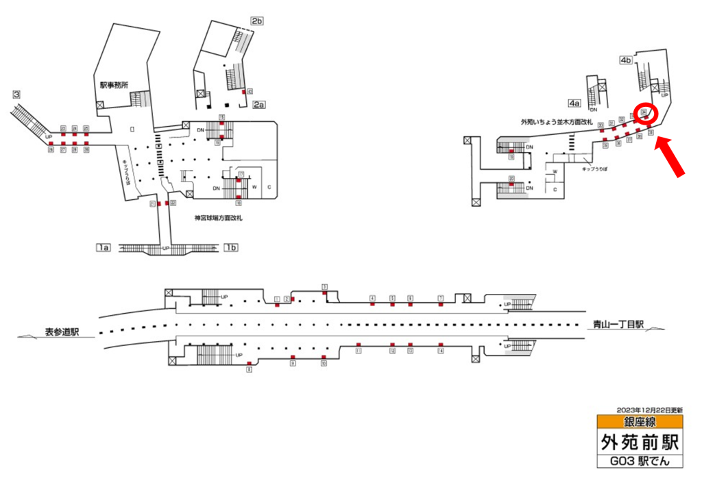 東京メトロ外苑前駅は一日の乗降客数が74,123人、銀座線が発着する駅です。