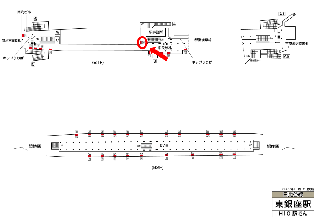 東京メトロ東銀座駅は一日の乗降客数が81,457人、東京メトロ日比谷線が発着する駅です。