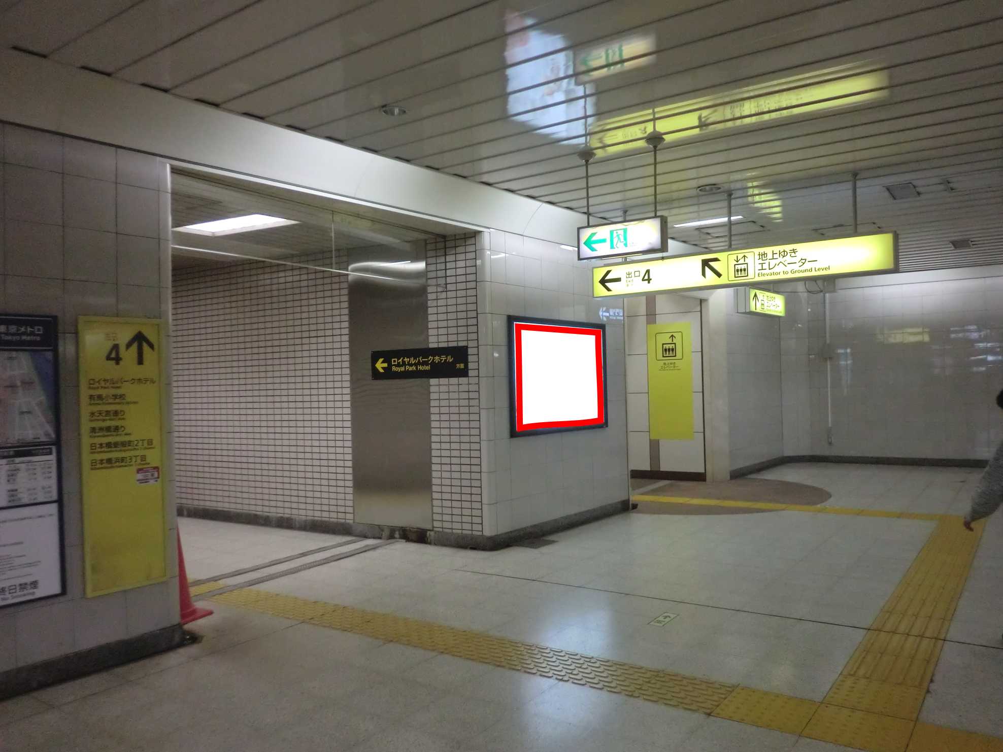 東京メトロ半蔵門線 水天宮前駅改札前の④出口壁面に設置されている看板です。