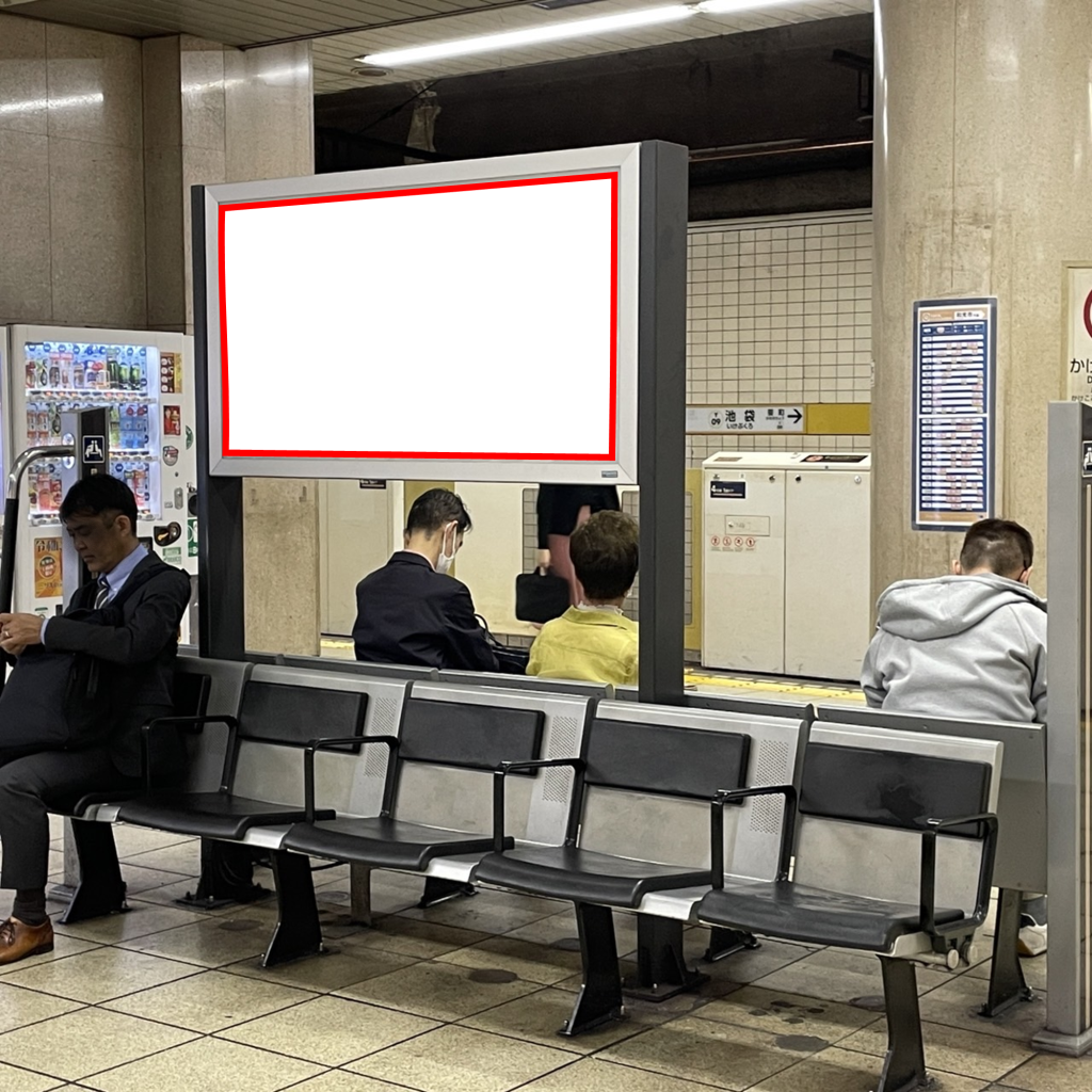 東京メトロ有楽町線池袋駅のホームに設置されたベンチ看板(両面)です。