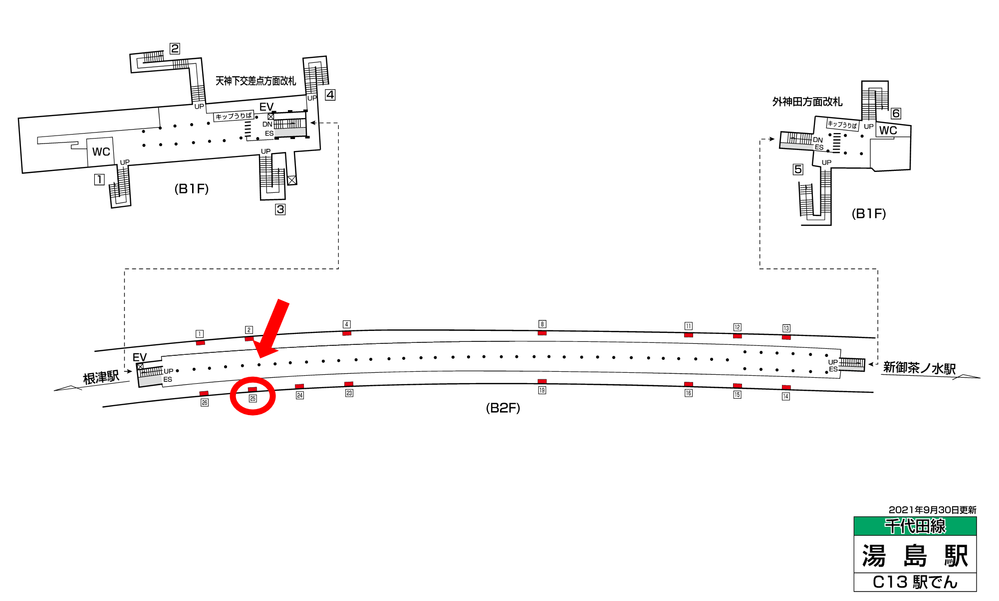 東京メトロ湯島駅は一日の乗降客数が32,807人、東京メトロ千代田線が発着する駅です。