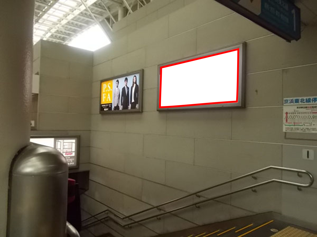 JRさいたま新都心駅、京浜東北線ホーム階段横壁面に設置されている看板です。