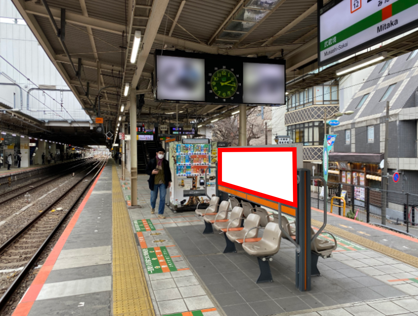 三鷹駅、中央線(快速)・中央総武(各駅停車)線・東西線沿線、武蔵野・三鷹・吉祥寺方面での広告をお考えの方に最適な駅看板です。