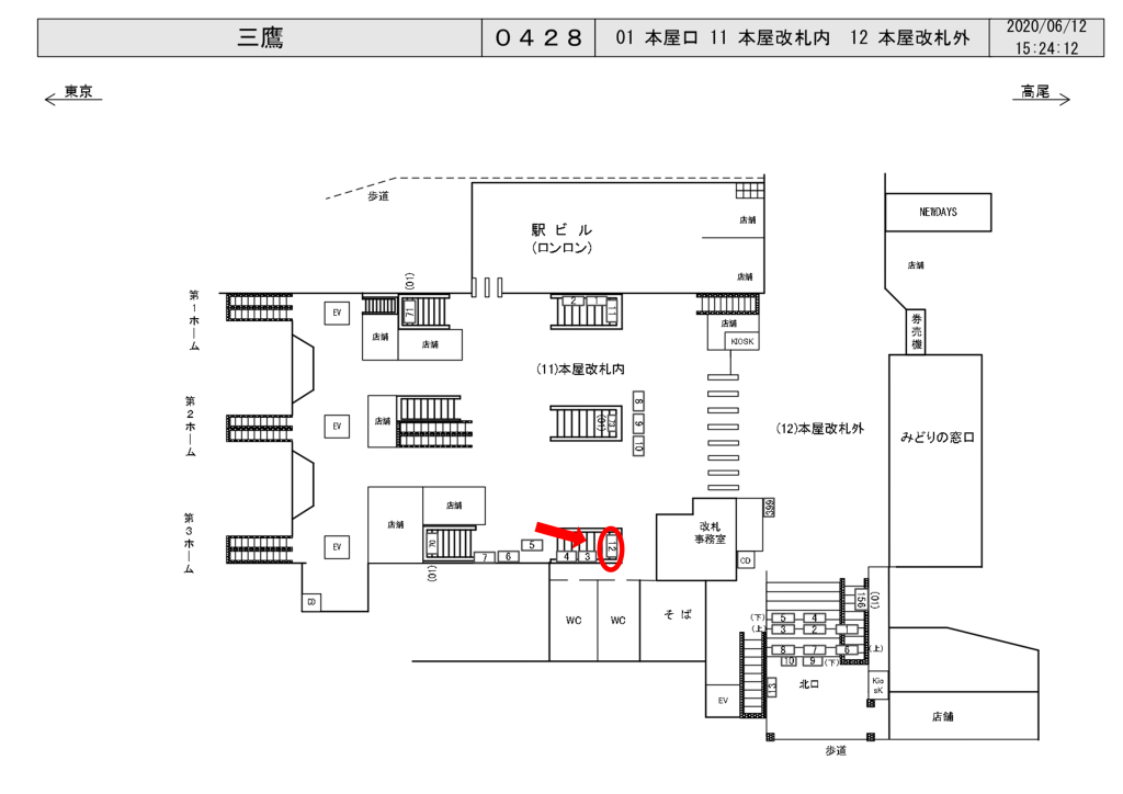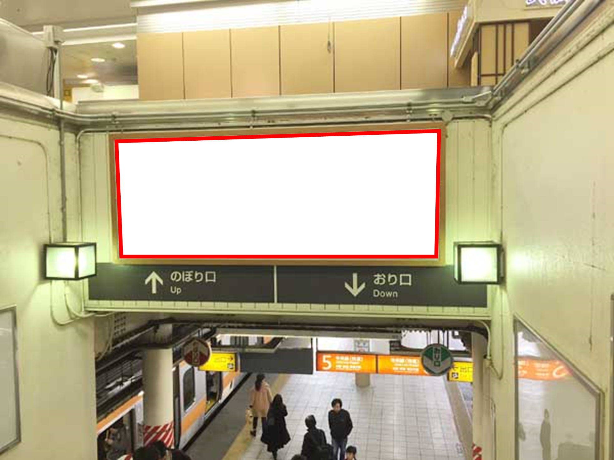 ■改札内コンコースからホーム(中央線快速・東京方面)階段正面の大変視認性の高い看板です。