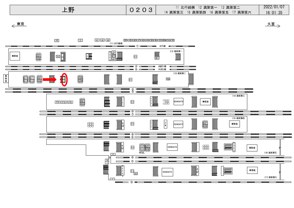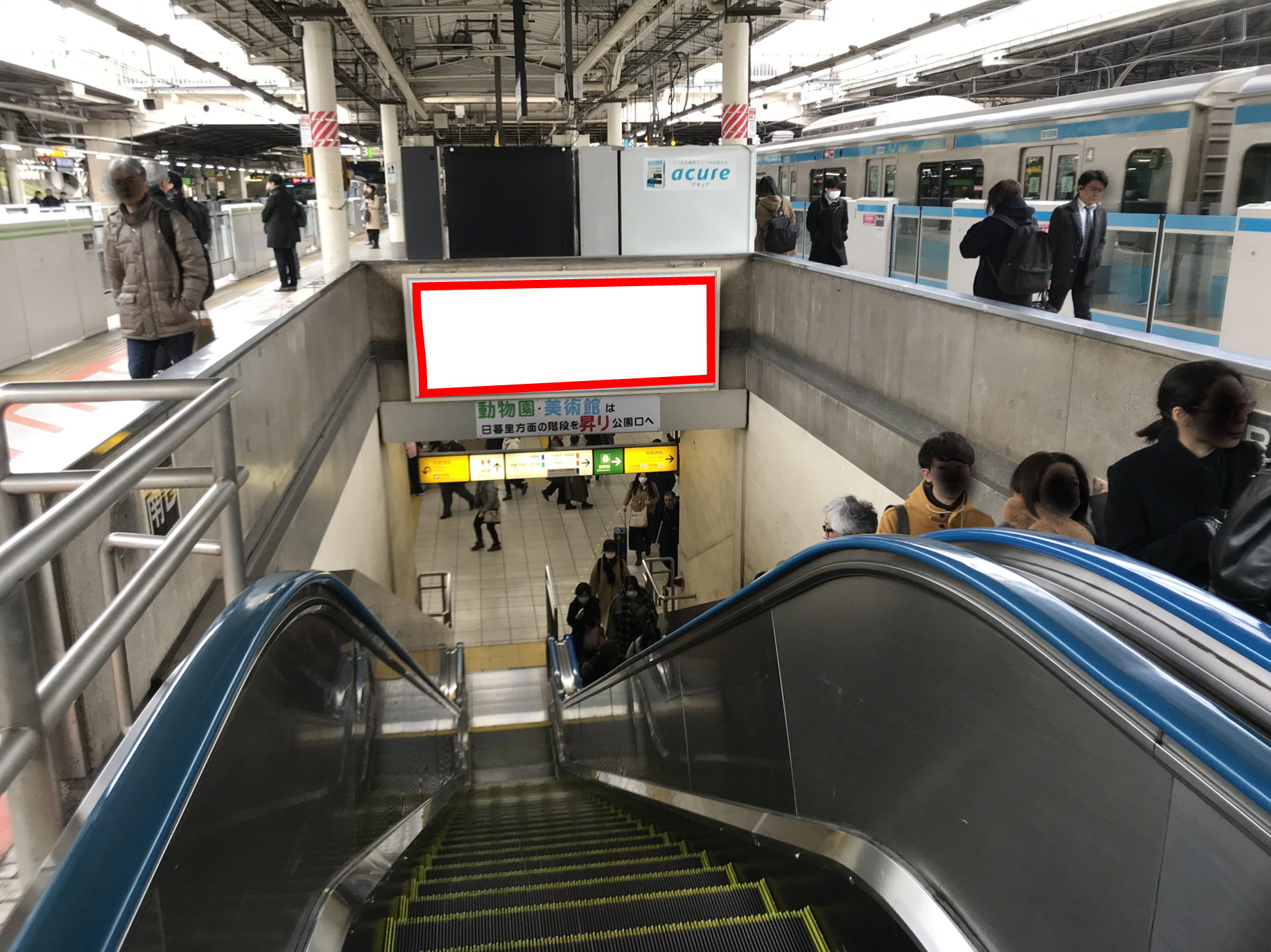 JR上野駅の山手線(外回り)・京浜東北線(大船方面)ホーム上、エスカレーター正面の特額看板のご案内です。