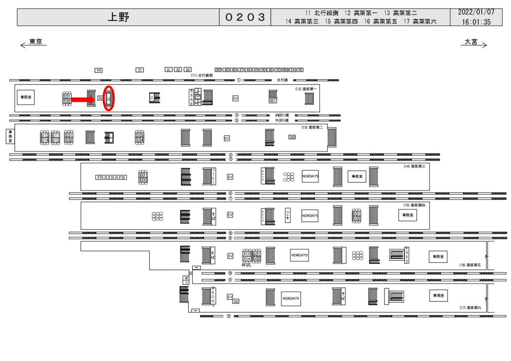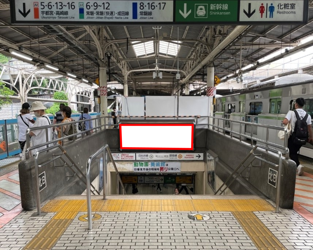JR上野駅の山手線(内回り)・京浜東北線(大宮方面)ホーム階段正面の特額看板のご案内です。