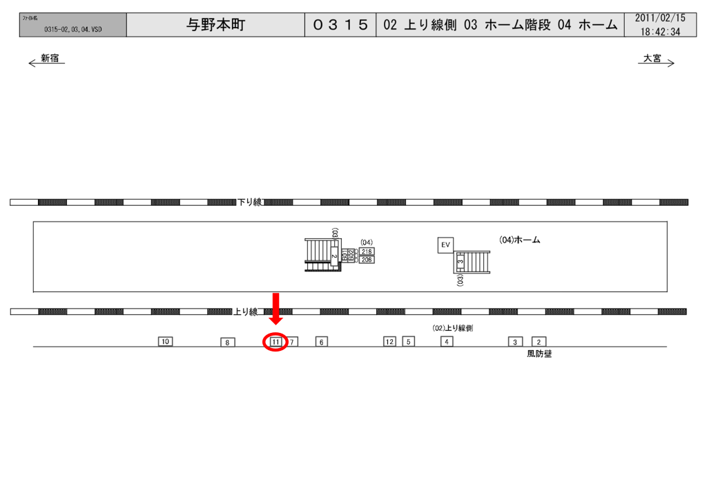 JR与野本町駅の埼京線上り(池袋・新宿・大崎方面)ホーム階段・エスカレーター横のホーム前に設置された看板です。