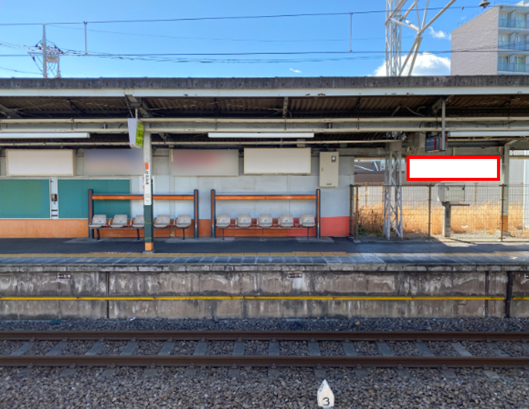 ■反対側の上りホームで電車をお待ちのお客様もご覧になる注目度の高い看板です。