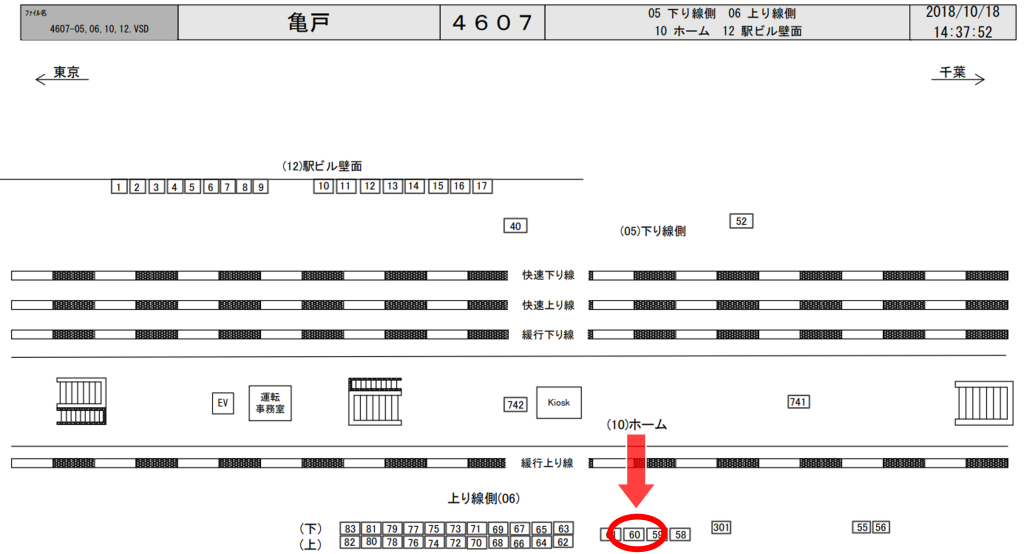 JR亀戸駅は一日の乗降客数が109,972人、中央・総武線(各駅停車)が発着する駅です。