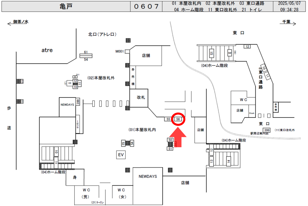 JR亀戸駅の北口改札内、精算機付近に設置された電飾看板です。