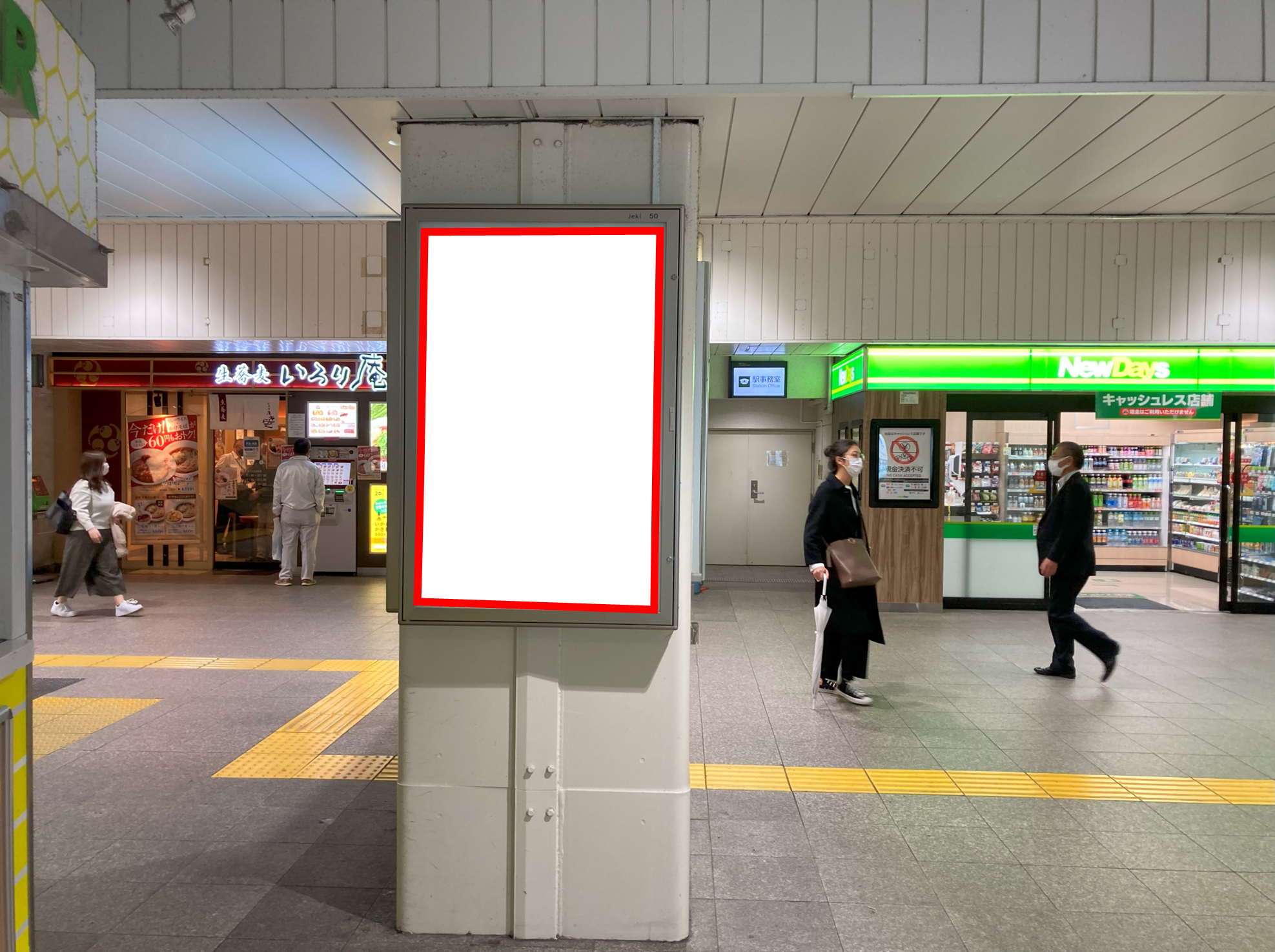 ■エキナカ店舗前の柱面に設置され駅をご利用される多くのお客様がご覧になる看板です。