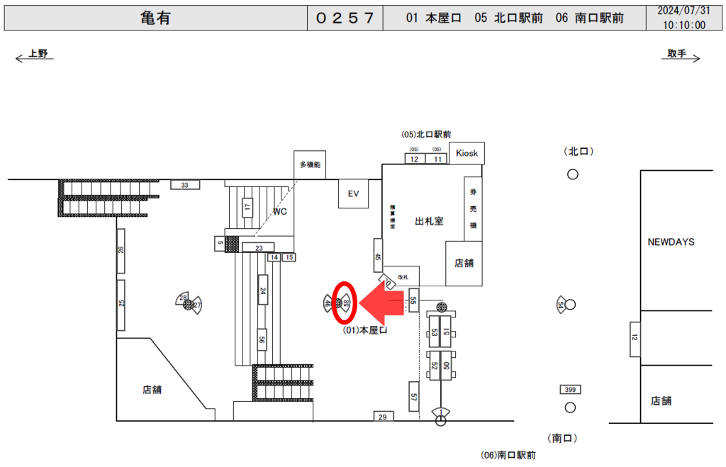 JR亀有駅は一日の乗降客数が78,966人、常磐線が発着する駅です。