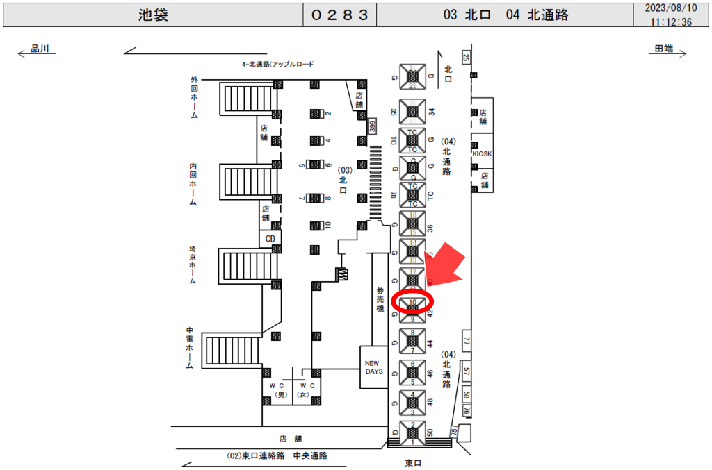 JR池袋駅の北改札外、北通路の券売機近くに設置された駅看板です。
