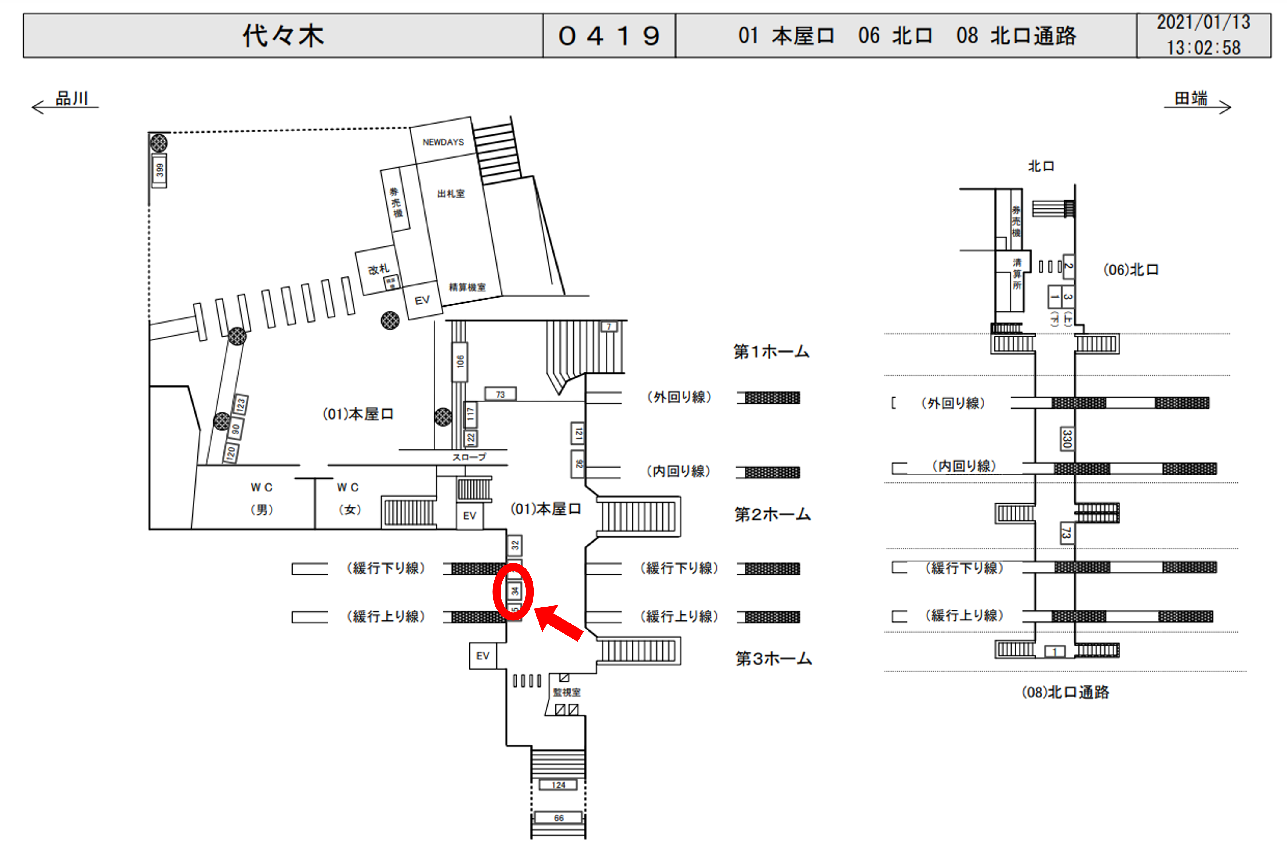 JR代々木駅は一日の乗降客数が140,836人、山手線、中央・総武線(各駅停車)が発着する駅です。