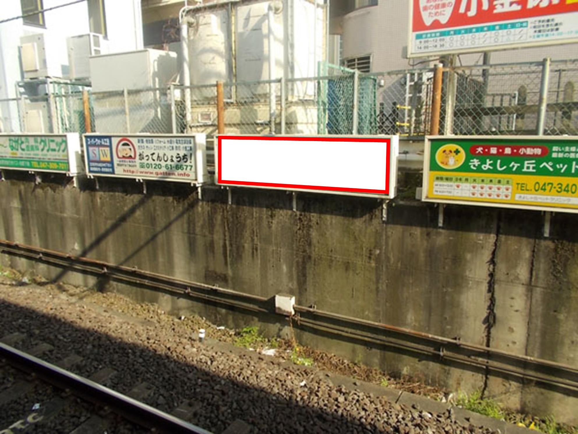 JR北小金駅の上りホーム前に設置されている看板です。