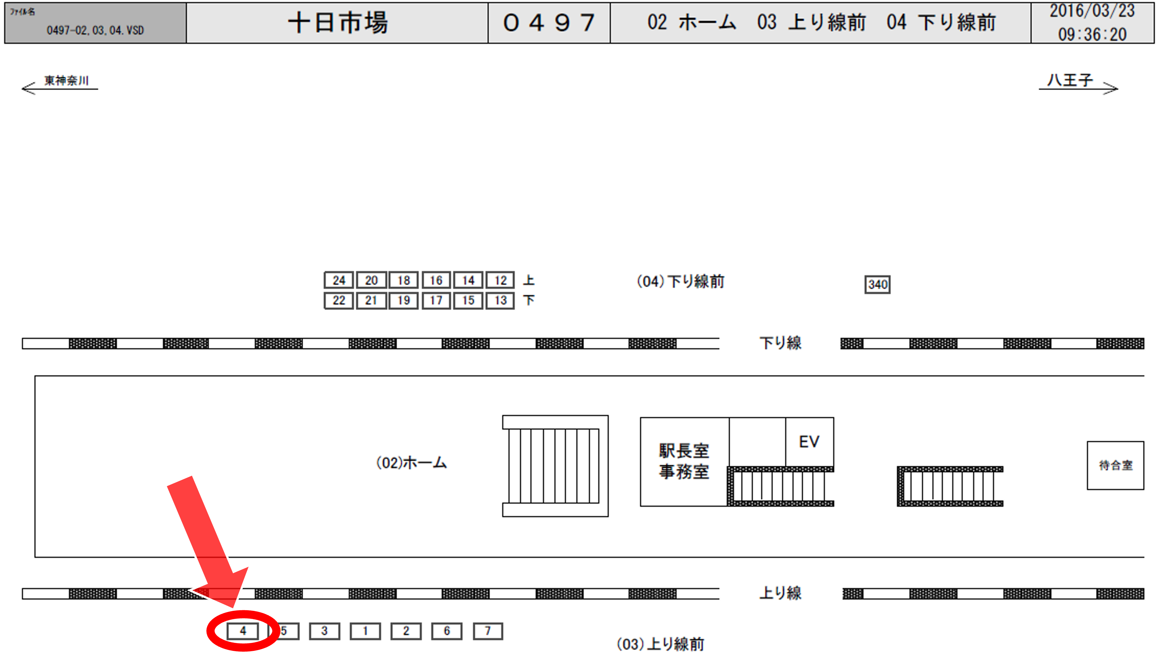 JR横浜線 十日市場駅の上りホーム(新横浜・東神奈川・横浜方面)前に設置されている看板です。
