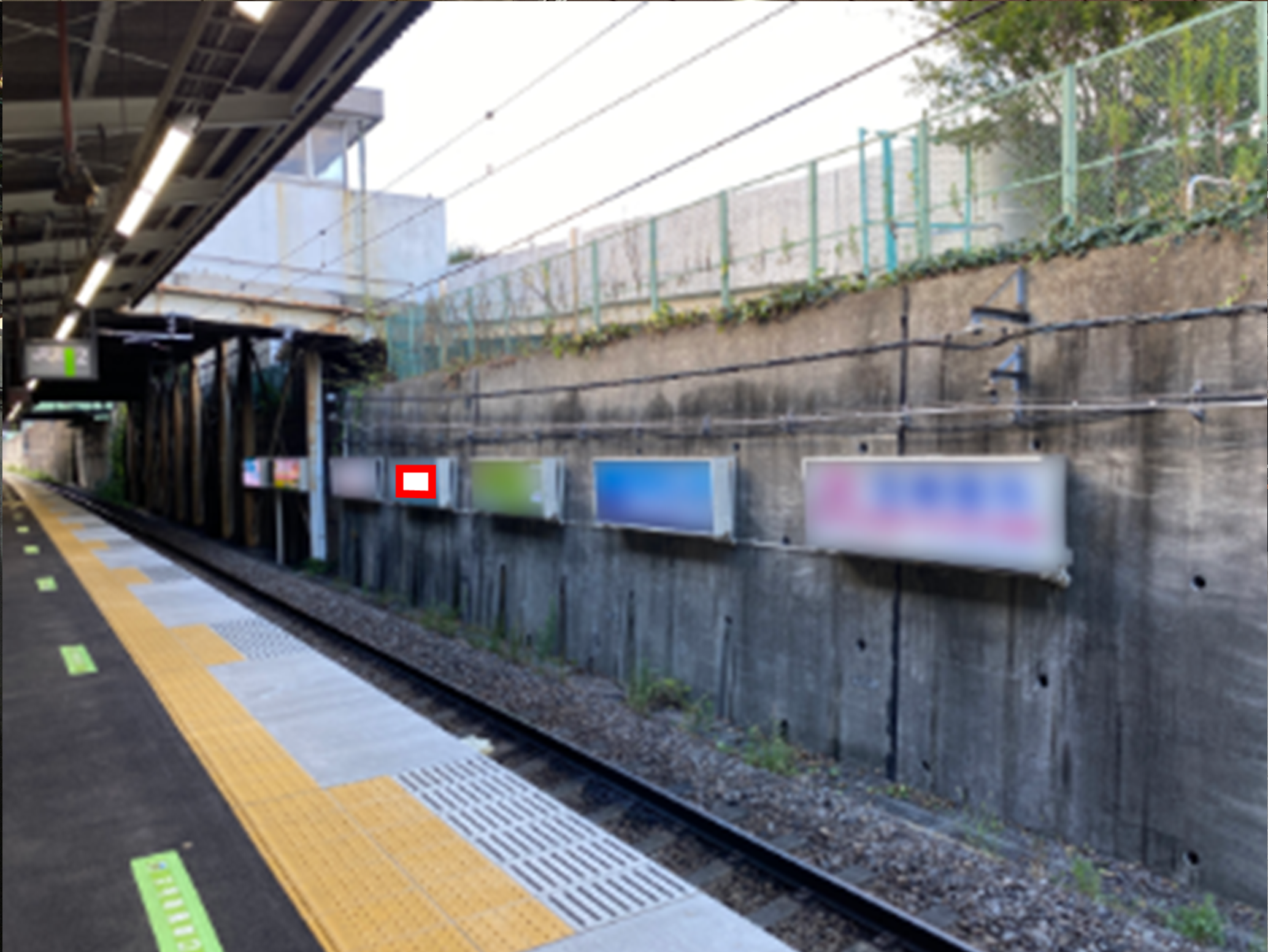 ■ホーム階段付近にあり車内からも多くの方がご覧になる視認性の高い看板です。