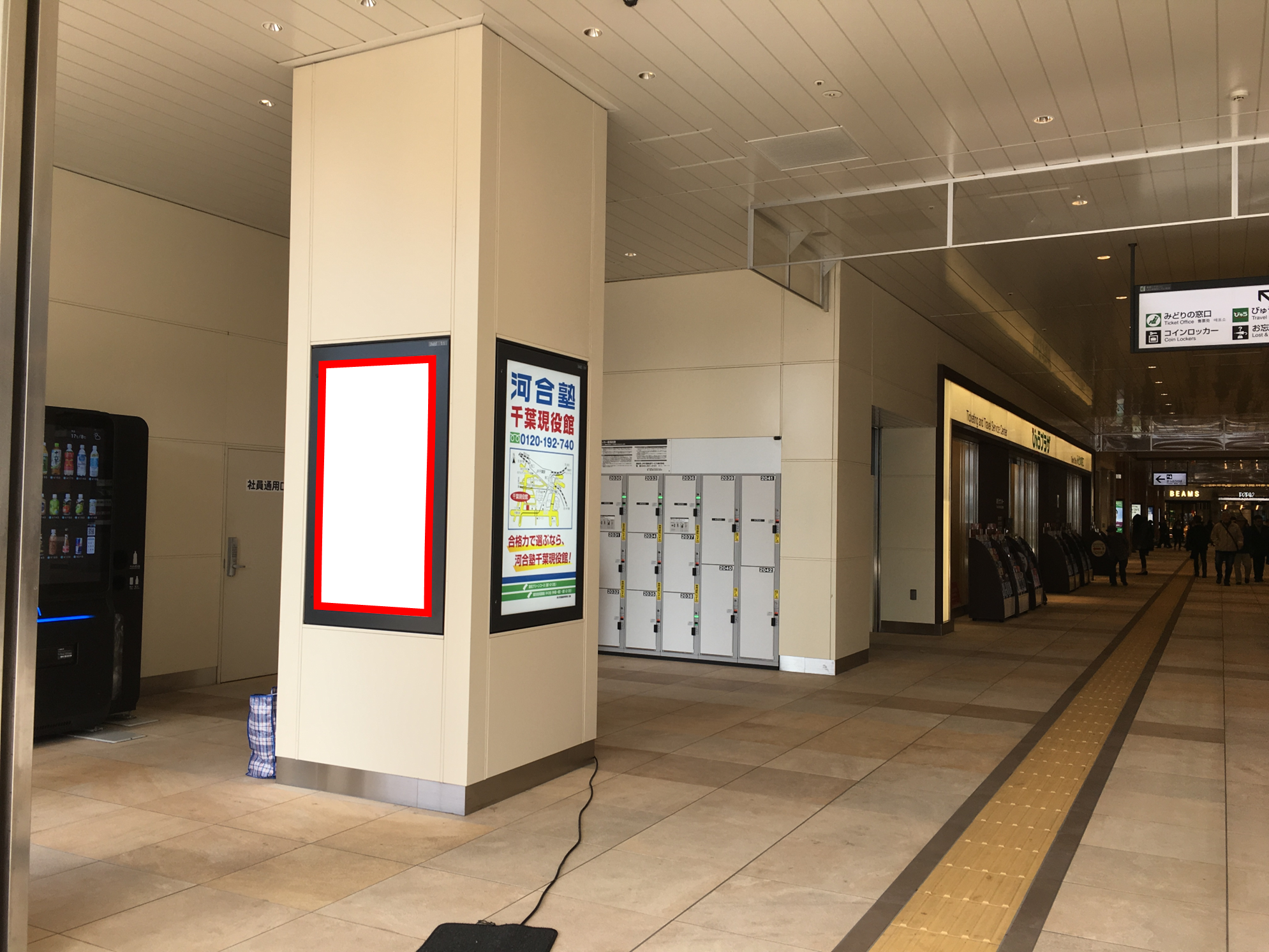 JR千葉駅の改札外コンコース、南口方面の柱面に設置されている電飾看板です。