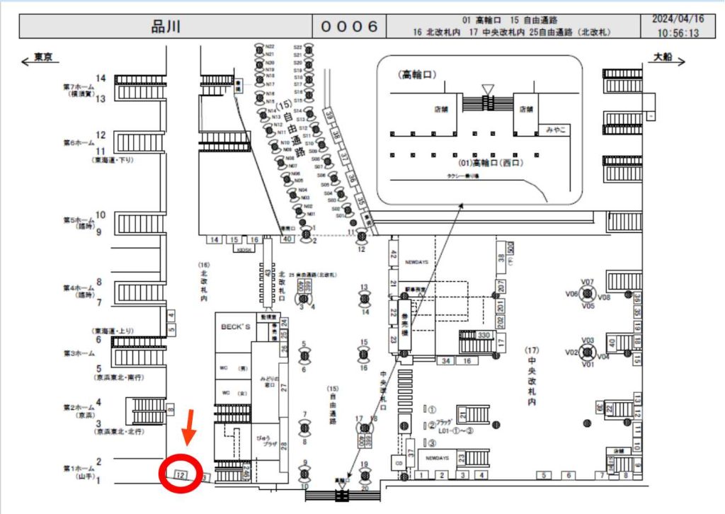 JR品川駅の北改札内の第1ホーム(山手線)階段手前の壁面に設置された看板です。