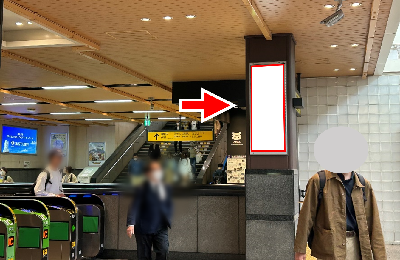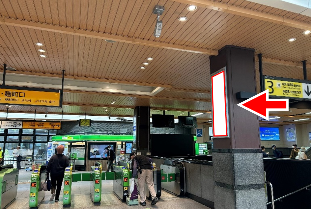 JR四ツ谷駅の四ツ谷・麹町口改札内、通路柱面に設置された看板のご案内です。