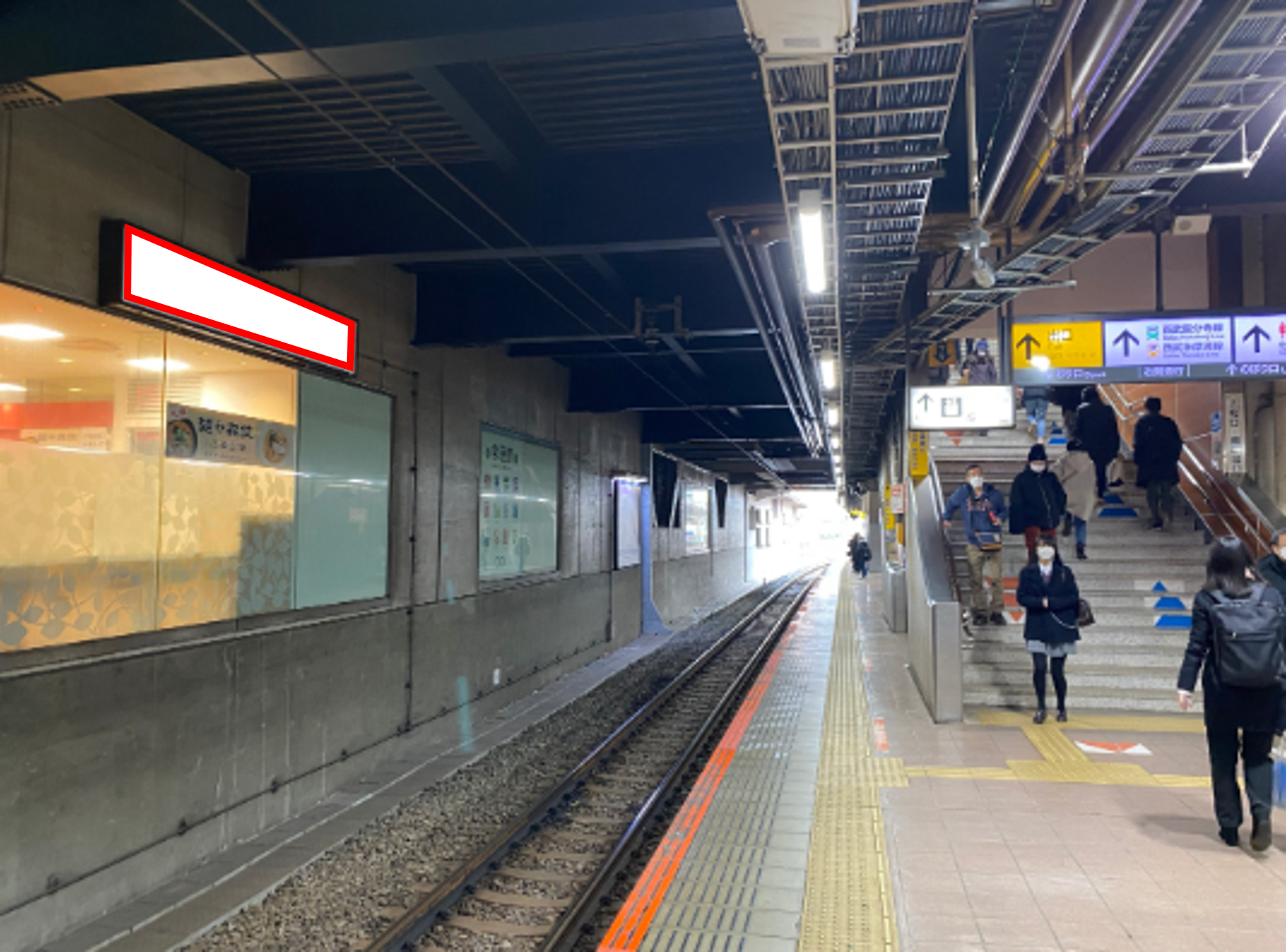 ■ホーム階段付近にあり、電車をお待ちのお客様や改札に向かわれるお客様に多くご覧いただける視認性の高い看板です。