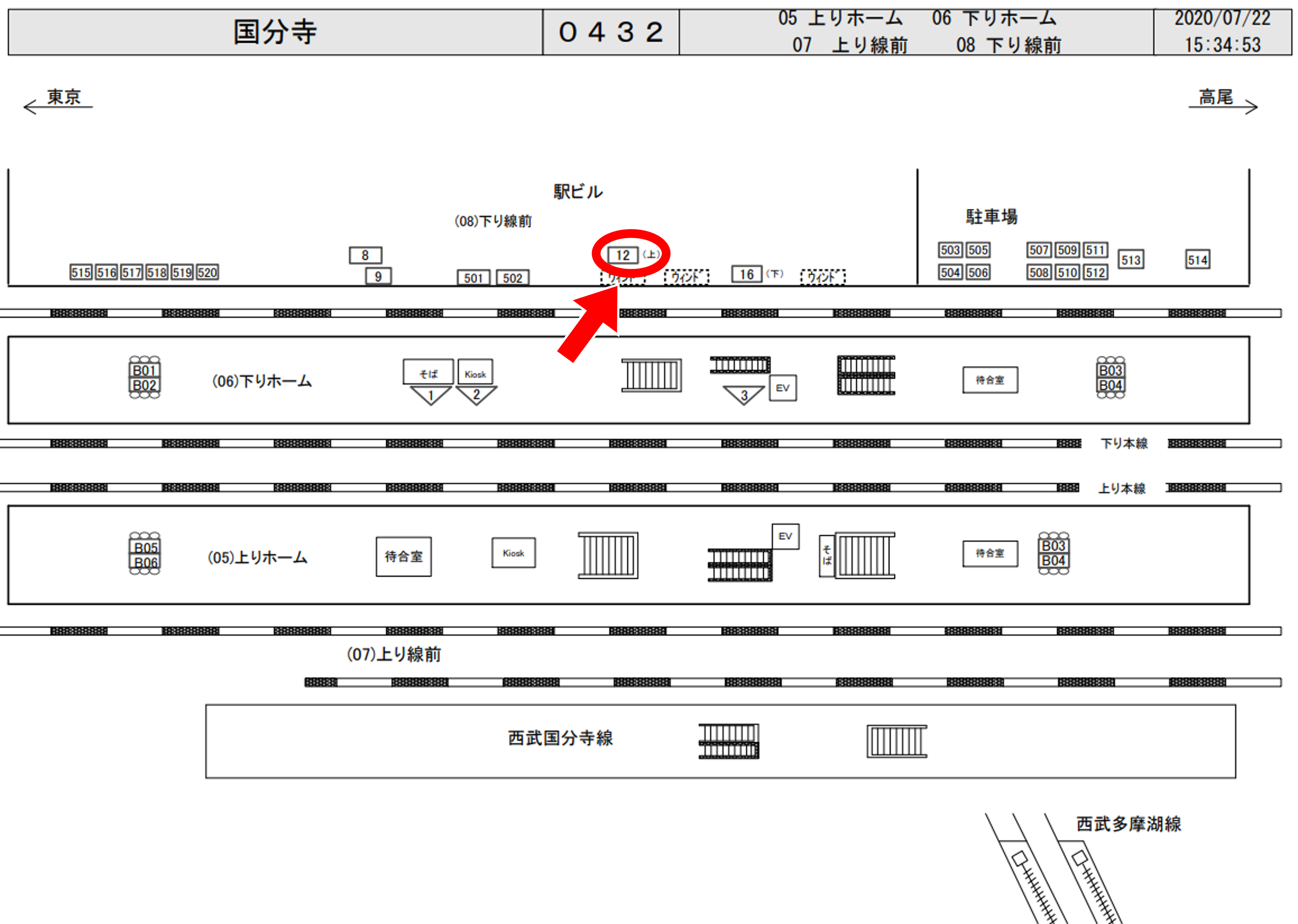 JR国分寺駅は一日の乗降客数が209,462人、中央線が発着する駅です。