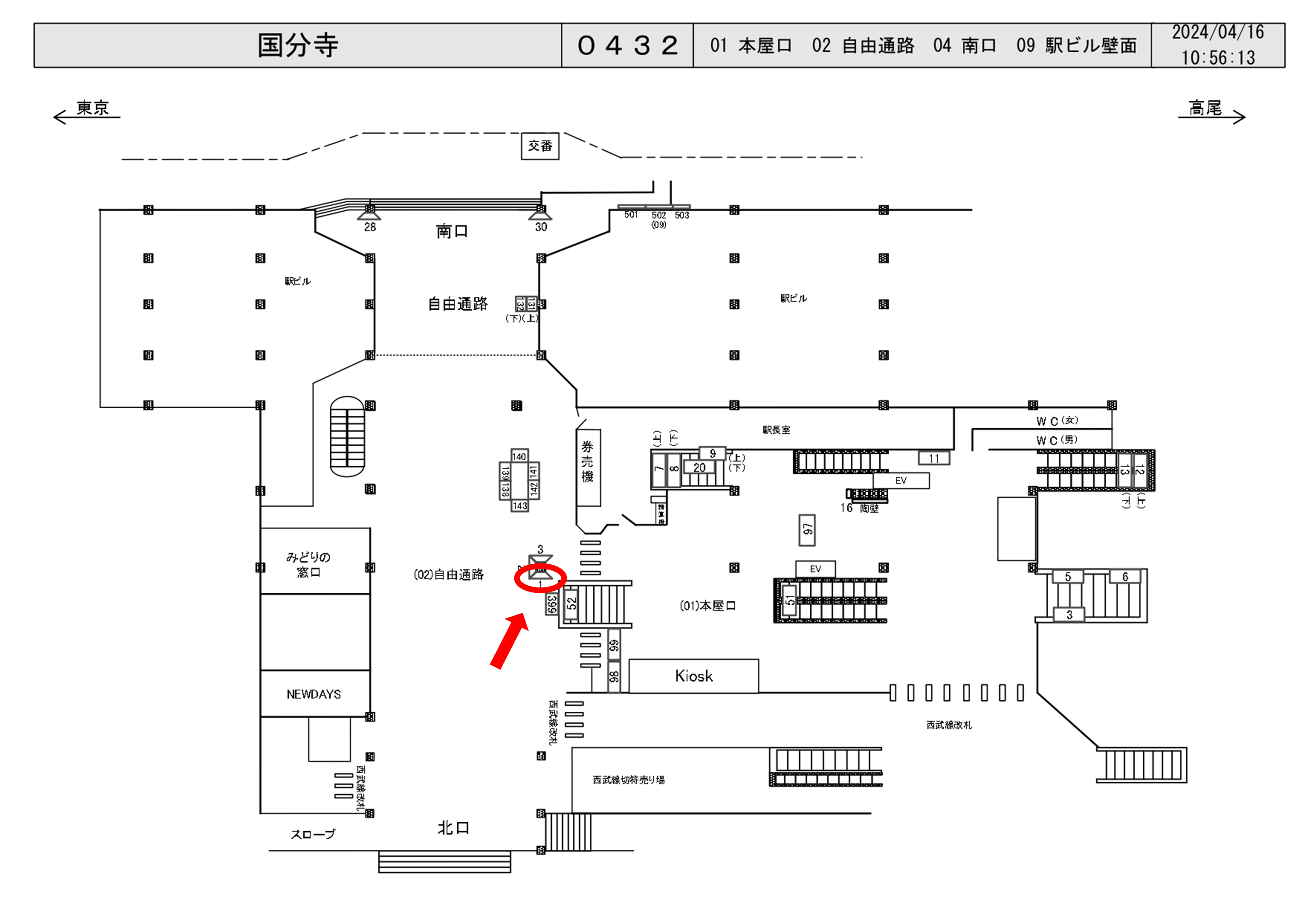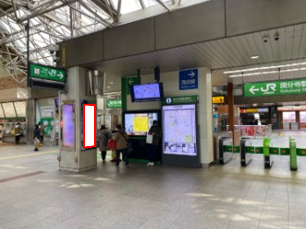 JR国分寺駅の改札外通路、改札前の柱面北側に設置された看板です。