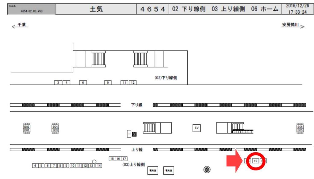 JR土気駅の上り(蘇我・千葉方面)ホーム前、ホーム階段付近に設置された看板です。