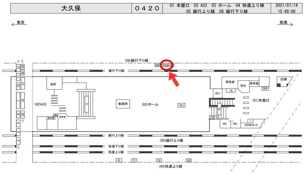JR大久保駅は一日の乗降客数が48,774人、中央・総武線(各駅停車)が発着する駅です。