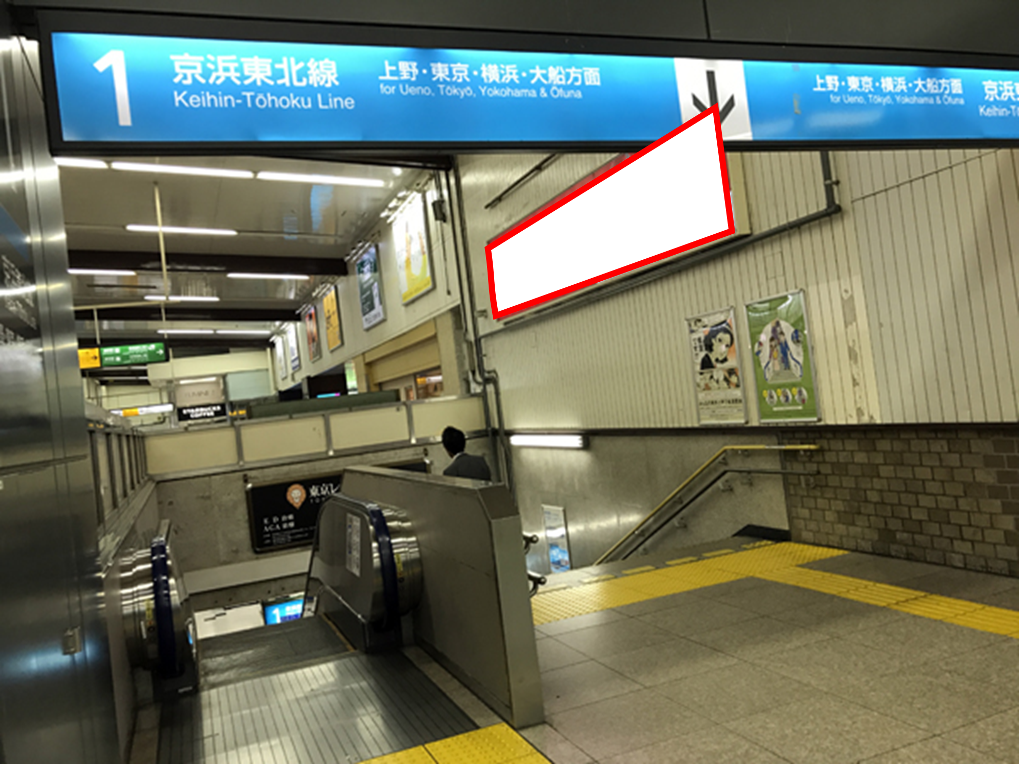 JR大宮駅の北口改札内、京浜線ホーム階段横壁面に設置された看板です。
