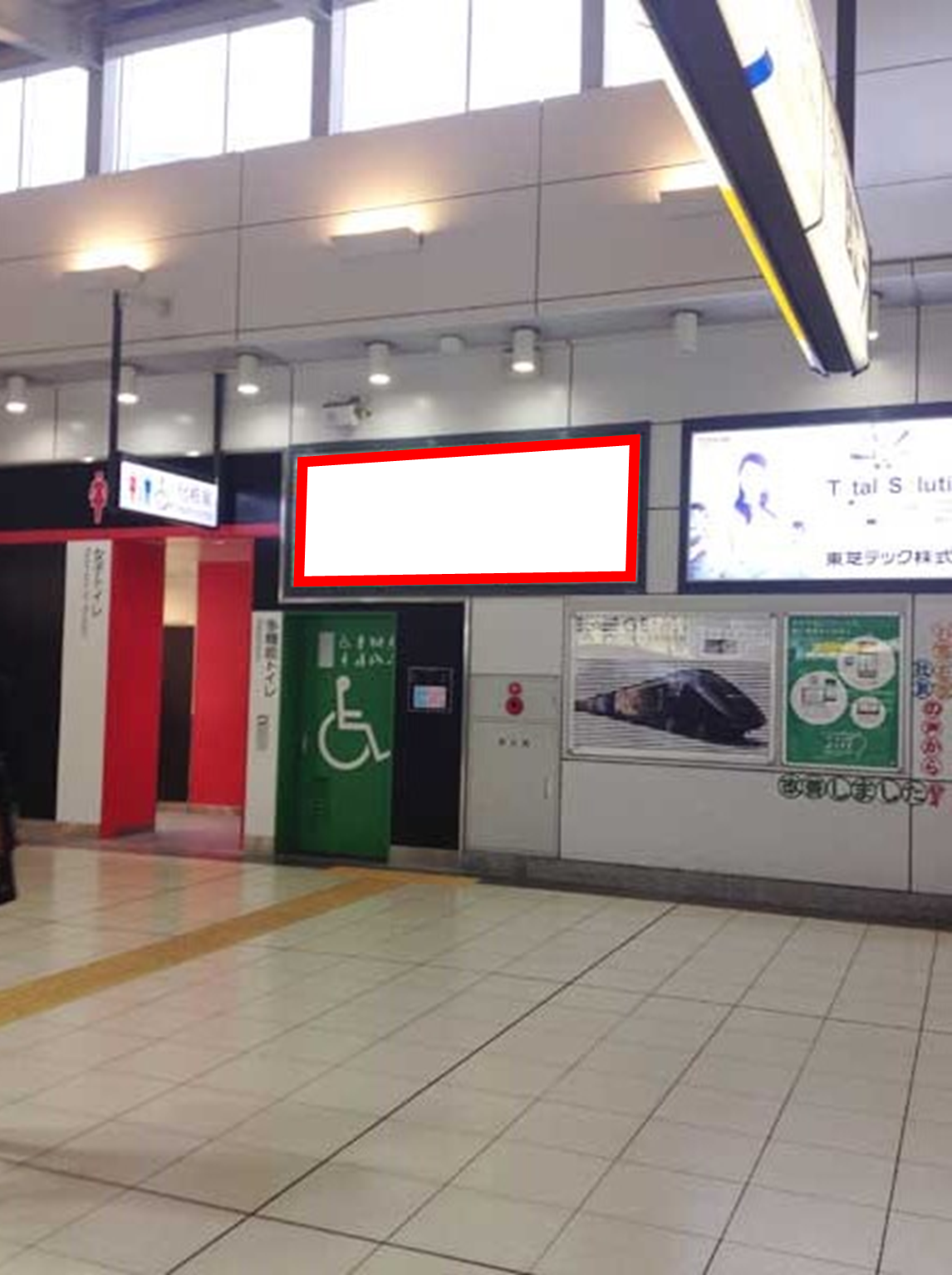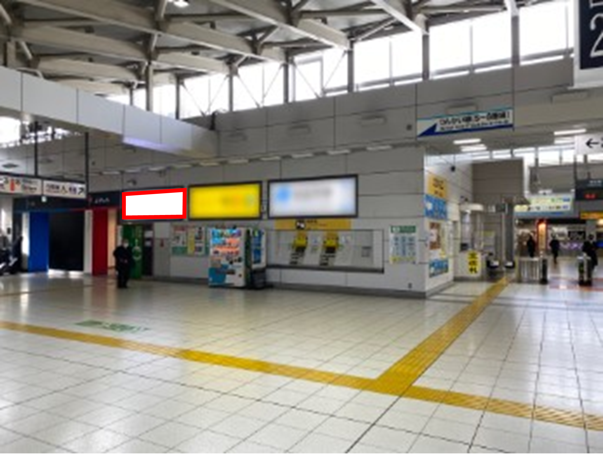 ■改札階コンコースからご覧いただけ、乗車される方や付近を通行される方など多くの方がご覧になる視認性の高い看板です。