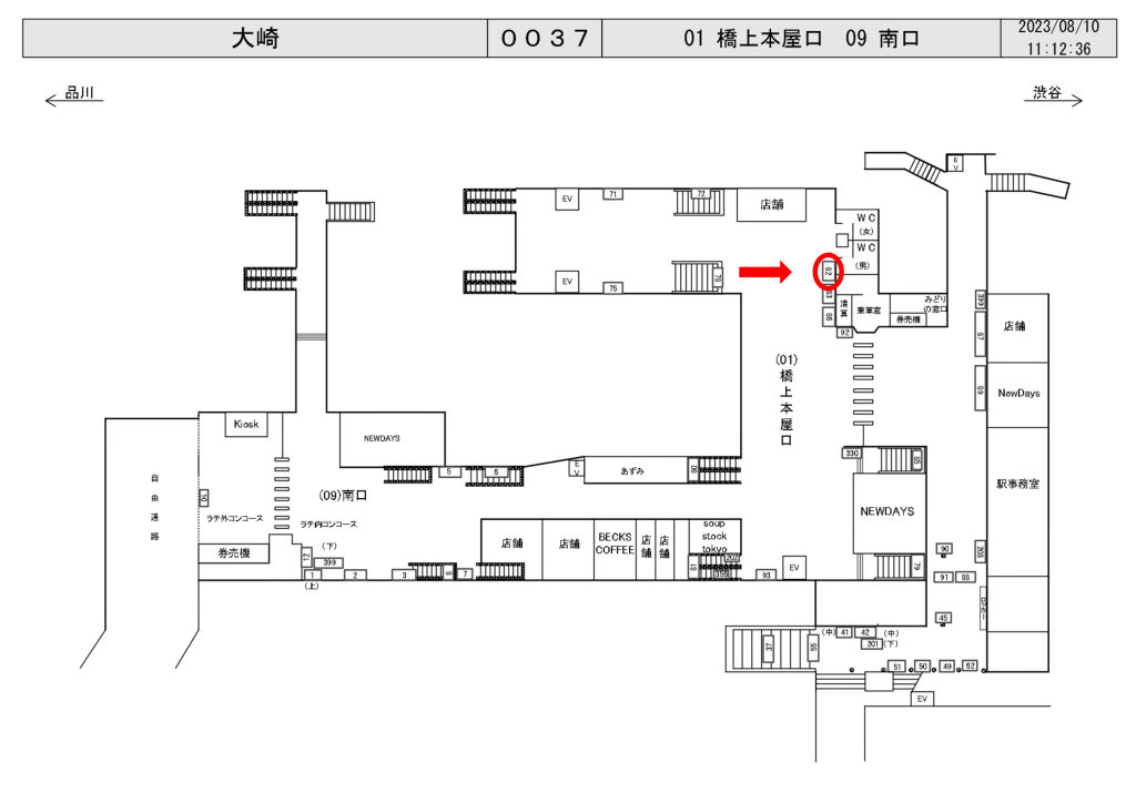 JR大崎駅、5・6番線ホーム階段寄りの改札横壁面に設置されている電飾看板です。