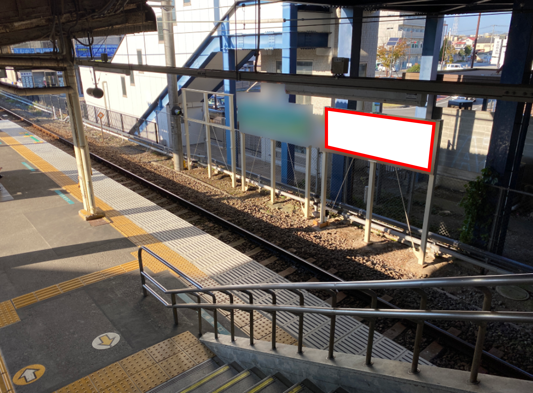 ■ホーム階段付近に設置されており、視認性の高い看板です。