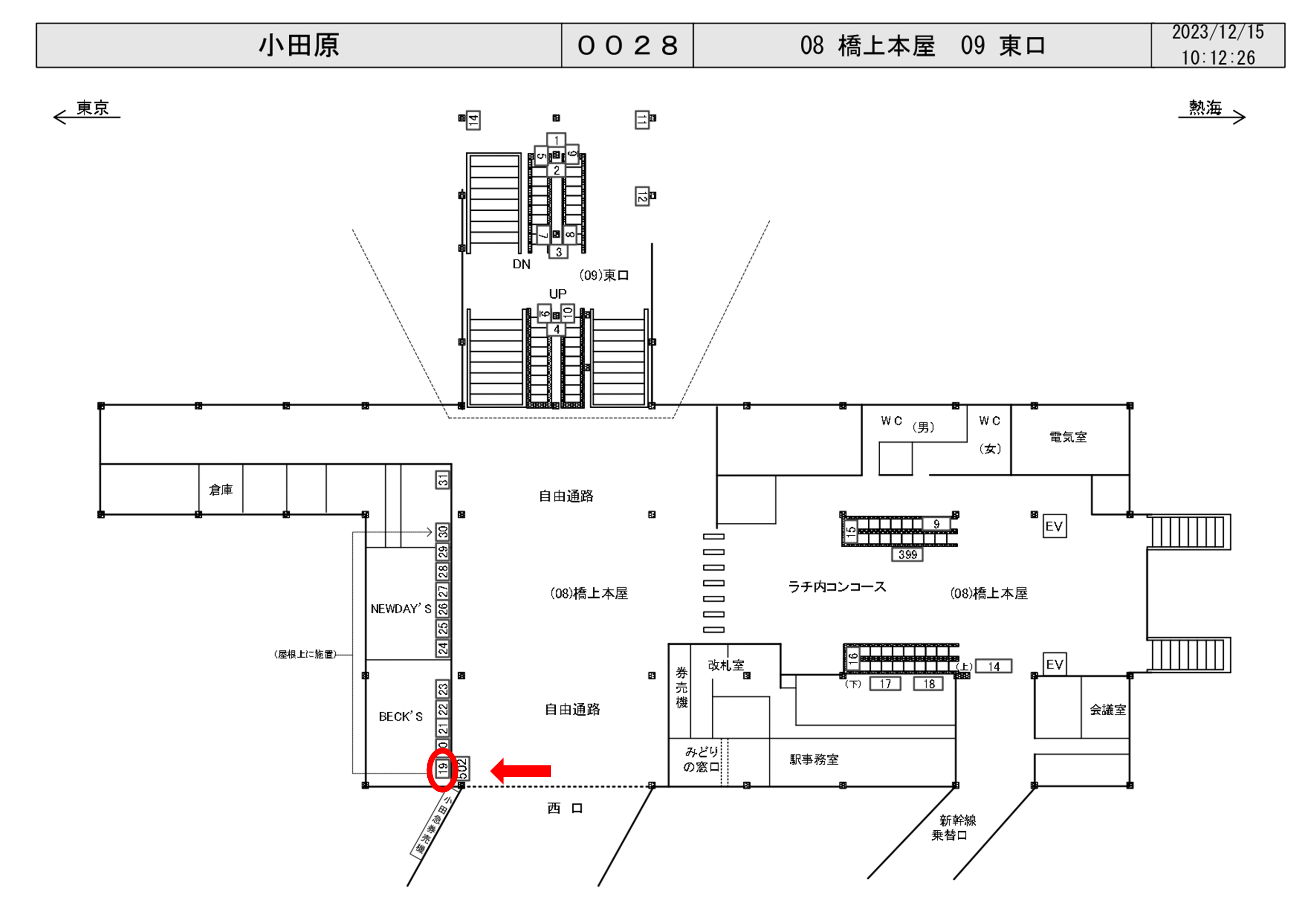 JR小田原駅は一日の乗降客数が64,938人、東海道線が発着する駅です。