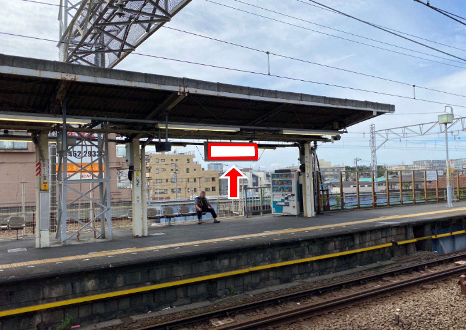 JR南武線 尻手駅、下りホームの上部に設置されている看板です。
