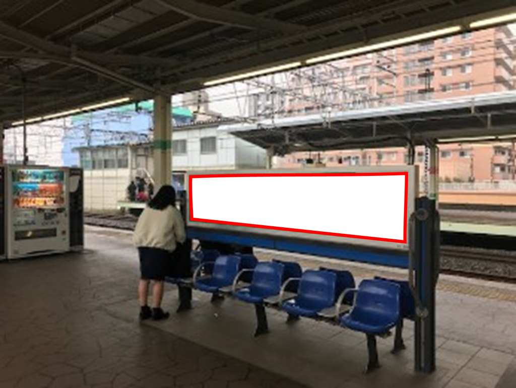 JR市川駅の快速ホームに設置されたベンチ看板(両面)です。