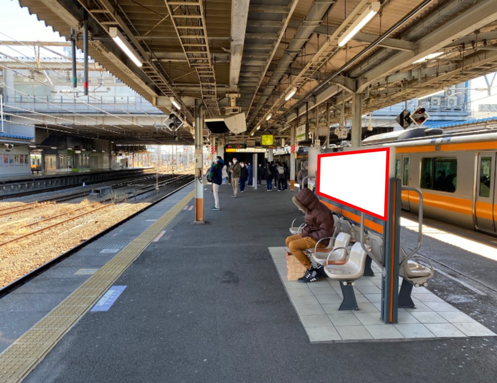 JR拝島駅、青梅線ホームに設置されたベンチ看板のご案内です。
