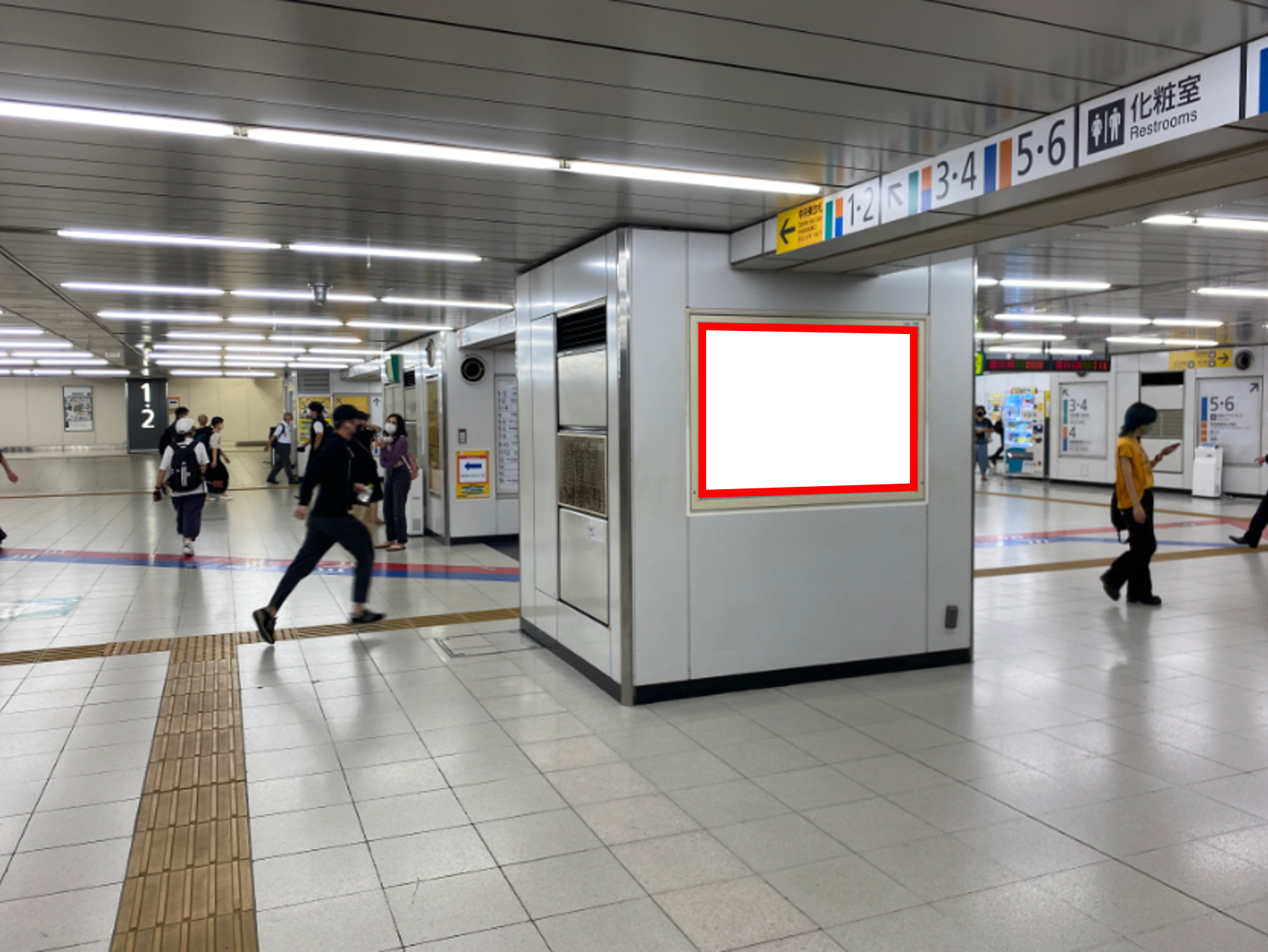 JR新宿駅の中央地下道、中央東口方面の柱面に設置された看板です。