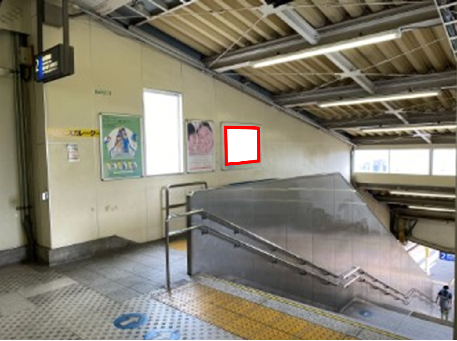 JR新川崎駅改札内、ホーム階段・エスカレータ壁面に設置されている看板です。