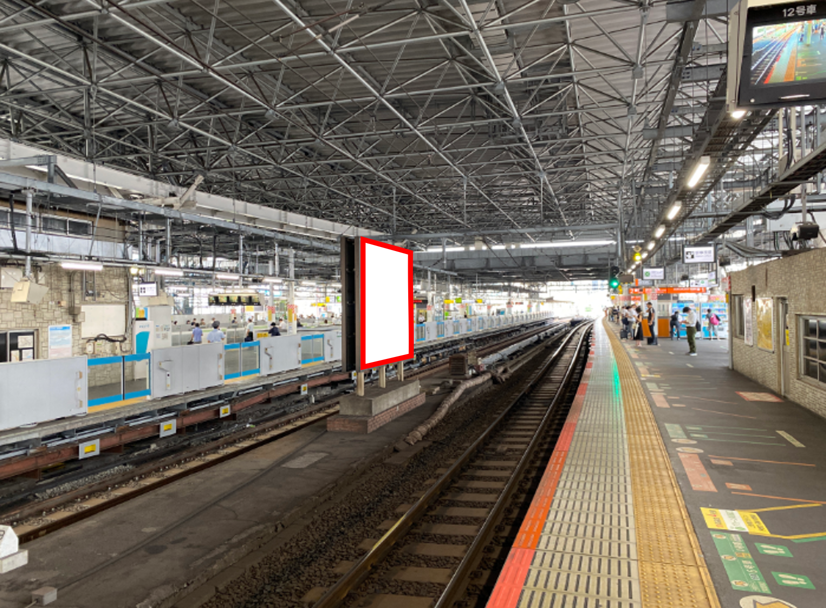 JR新橋駅の東海道線上りホーム前に設置された大型看板です。