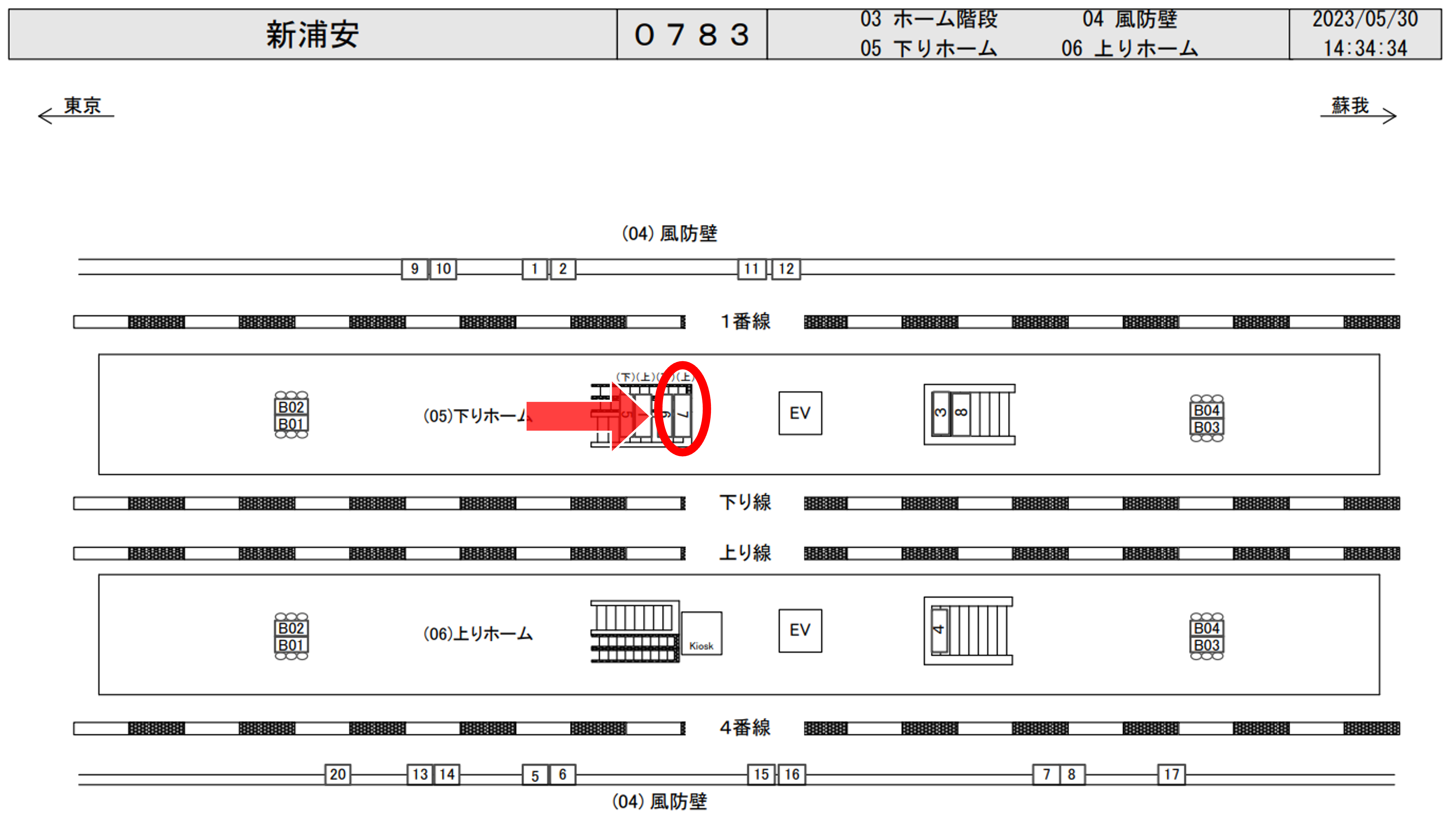 ■京葉線(海浜幕張・蘇我方面)や武蔵野線(西船橋・新松戸)をご利用のお客様が改札に向かう際に多くご覧になる看板です。