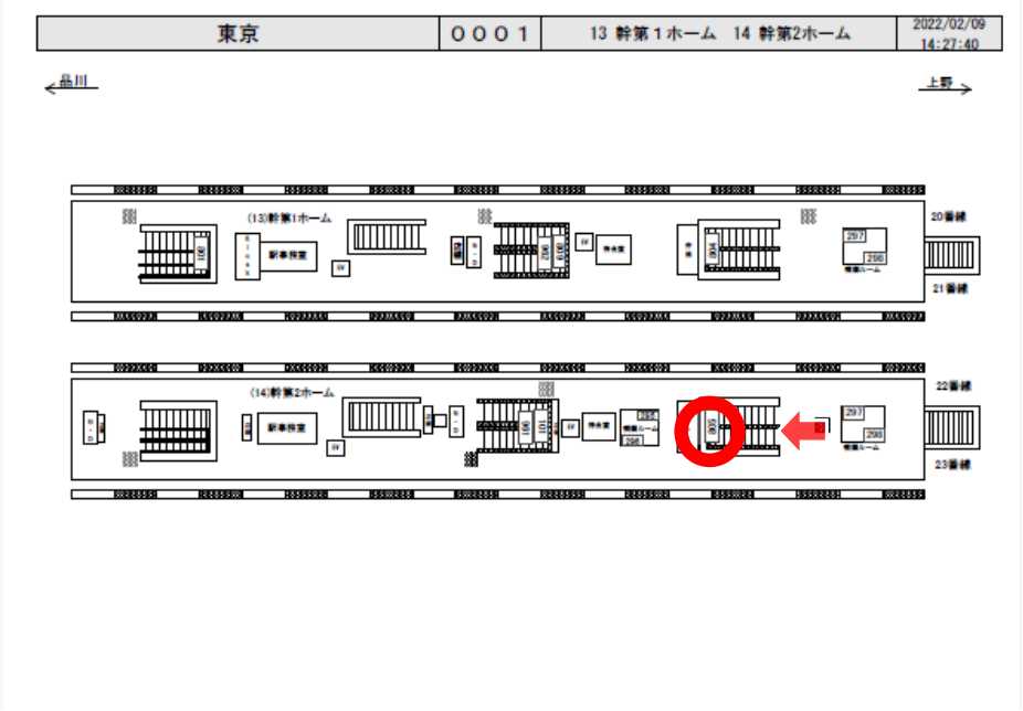 22・23番線ホームは、東北・山形・秋田・北海道・上越・北陸新幹線が発着します。
