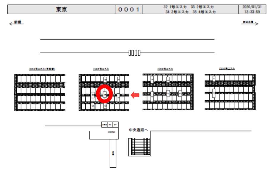 JR東京駅の丸の内地下中央口横、山手線・京浜東北線乗り場行きエスカレーター正面に設置された看板です。