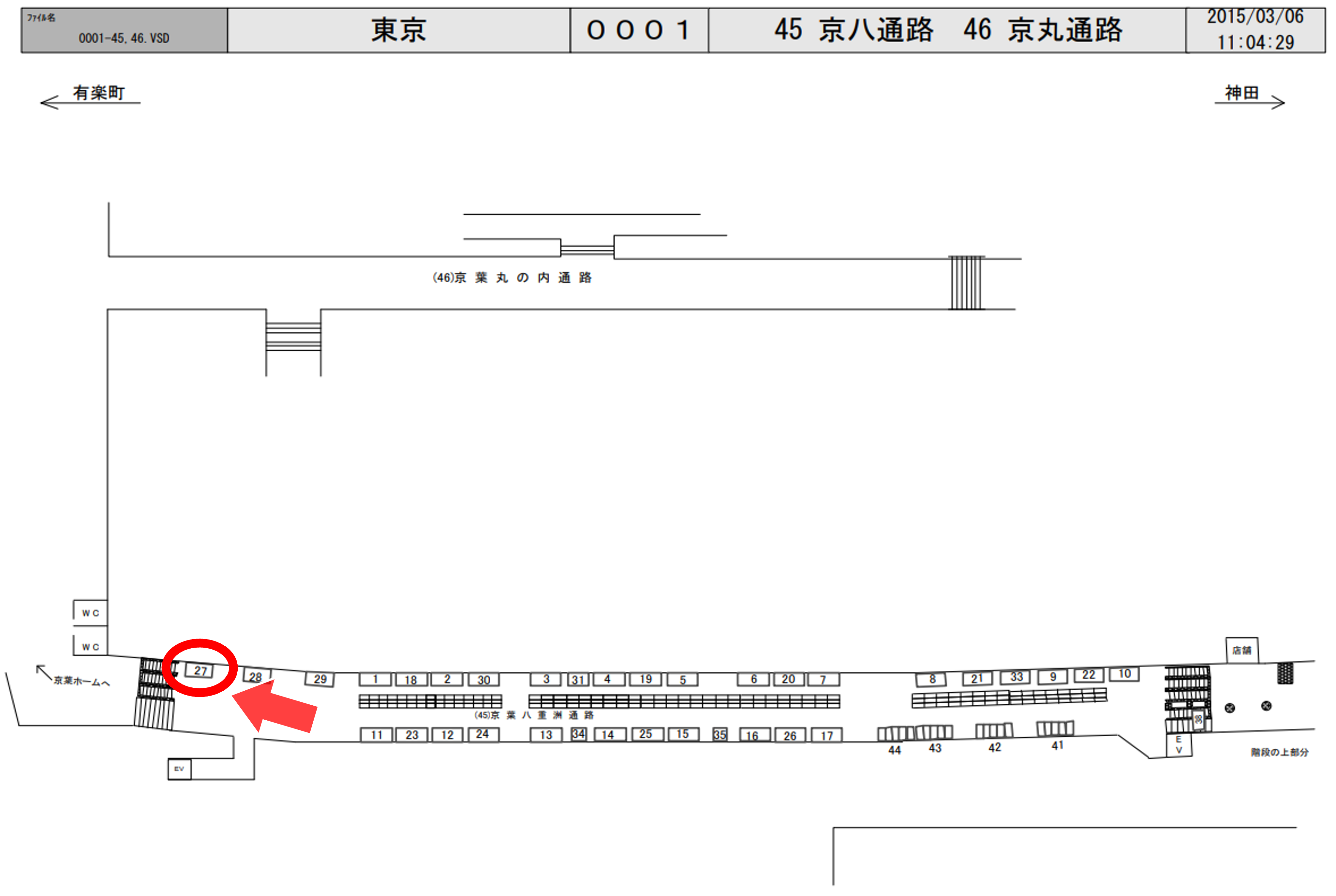 丸の内ビルディング(丸ビル)、丸ノ内オアゾ、八重洲地下街などに近く、